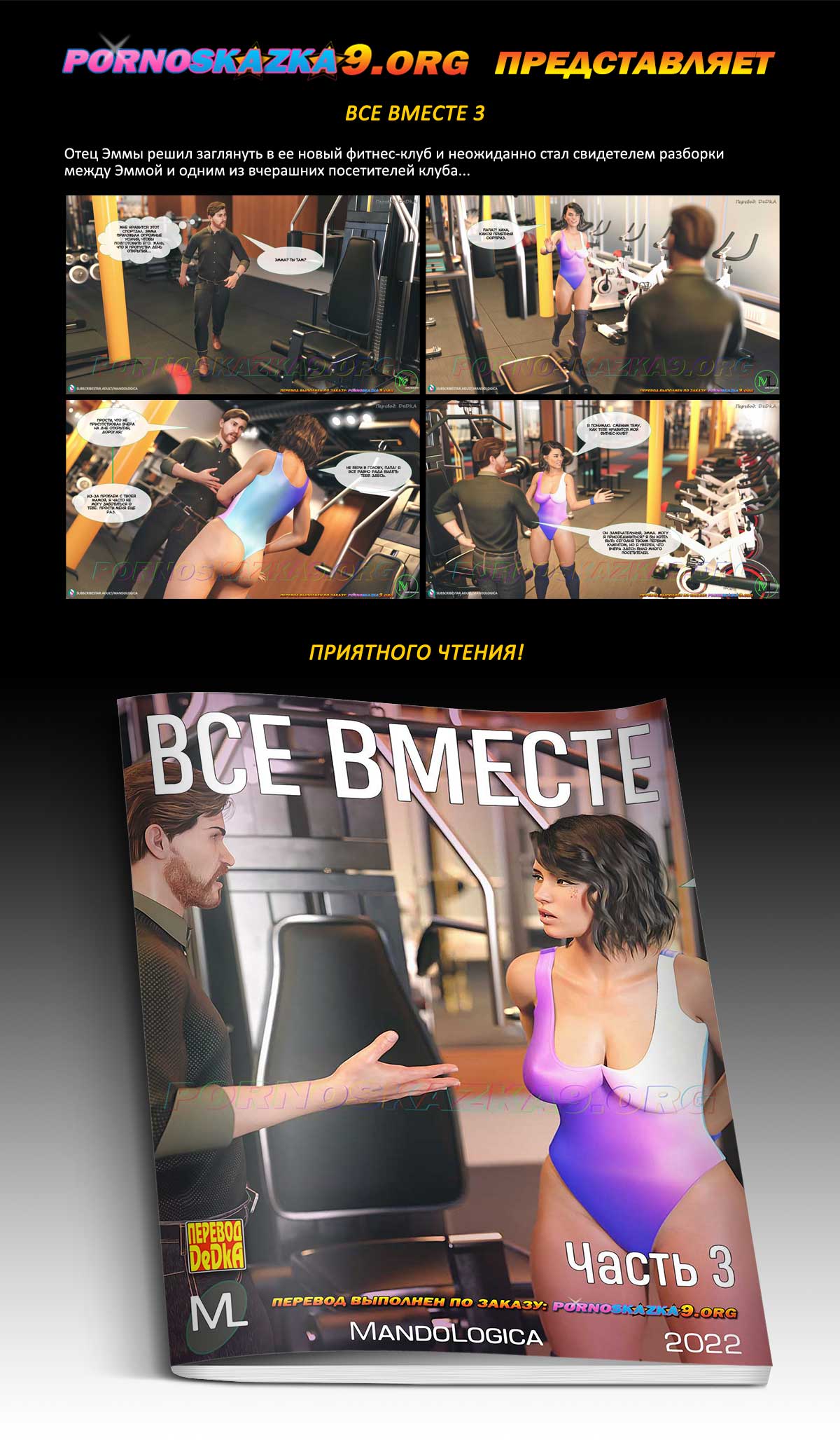 Порно комикс «Все вместе. Часть 3.» Отец Эммы решил заглянуть в ее новый фитнес-клуб и неожиданно стал свидетелем разборки между Эммой и одним из вчерашних посетителей клуба…